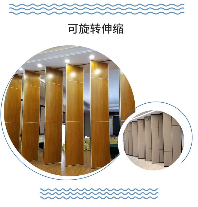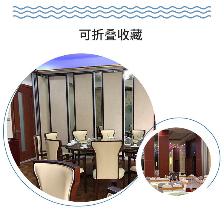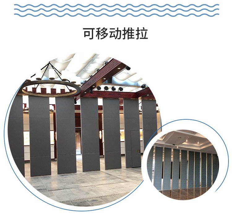 活动隔断具有高隔音、防火、可移动、操作简单等特点。极为适合星级酒店宴会厅、高档酒楼包间、高级写字楼会议室等场所进行空间间隔的使用。目前,活动隔断、固定隔断系列产品已经广泛适用在酒店、宾馆、多功能厅、会议室、宴会厅、写字楼、展厅、金融机构、政府办公楼、医院、工厂等多种场合。 活动隔断可以分为:拼装式活动隔断、推移式活动隔断、折叠式活动隔断、悬挂式活动隔断。活动隔断是一种根据需要随时把大空间分割成小空间或把小空间连成大空间、具有一般墙体功能的活动墙。活动隔断具有以下特点: 1.无地轨悬挂:地板无轨道,只需将轨道安装于天花板上; 2.稳定安全:隔断后稳固可靠,不易摆动; 3.隔音环保:隔音效果好,最大隔音系数可达53dB; 4.隔热节能:隔热性能优良,根据不同入座率,把大空间分割成小空间,以降低空调电耗; 5.高效防火:采用高效防火材料制作,防火性能良好; 6.美观大方:表面任意装饰,可与室内统一装饰效果; 7.收放灵活:隔板收放自如,推动灵活,一个人就可以完成隔断整个过程; 8.收藏方便:收板时,隔板可以隐藏在专用储柜中,不影响整体美观; 9.应用广泛:可应用于会议厅、展览厅、餐厅、高洁净工厂和办公室等场所