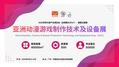 2026亚洲动漫游戏制作技术及设备展览会 2026世界文旅产业博览会(总规模30万m²)—重要主题展 时间:2026年5月10-12日 地点:广州.中国进出口商品交易会展馆